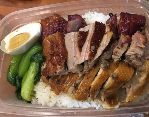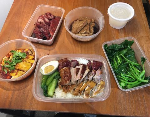想吃烧味了,看着这家评分还不错,就随手点了几份外卖,没想到歪打正着点着一家性价比超高的烧味餐厅。不能和高级的粤菜相比吧,但是和同价位的餐厅相比的话,真是太绰绰有余了,作为一份工作餐的话,这边一份饭真是划算到不行。 【招牌烧味四宝饭】其中四宝为随机产品,内容可能会更换,如有什么忌口的产品记得告知商家,自己点的一份里面是没有红肠的,但是同事点的那份就有红肠。叉烧不错,肥瘦适宜味道也还可以,烧鸭皮算脆,肉质也可以,油鸡有点鸡肋。 【蜜汁叉烧】甜甜的,肉质紧实,味道很好,20+好大一盒。 【口水鸡】毕竟不是做川菜的店,所以鸡的口感吃上去没有川菜店里面的鸡肉那么辣,鸡肉很嫩,口感还不错。 【白灼芥蓝】芥蓝新鲜,就是淋的鲜酱油多了点,显得有点油,不过不影响口感。 【卤味豆腐】这个不推荐,酱汁浸泡豆腐干太久,豆腐非常的咸,不怎么好吃。 包装盒用的也不是那种廉价的包装盒,包装较为考究,非常干净。