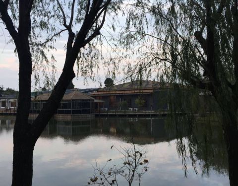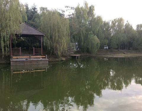 公司活动选择的地方,2号别墅有两个卧室,一个是大床房,一个是标间。客厅里有两桌棋牌,外面可以烧烤。湖边能钓鱼,按照分量收费。据说以前有梅花鹿,现在没了。运动馆200元一小时,整个场子都可以使用。