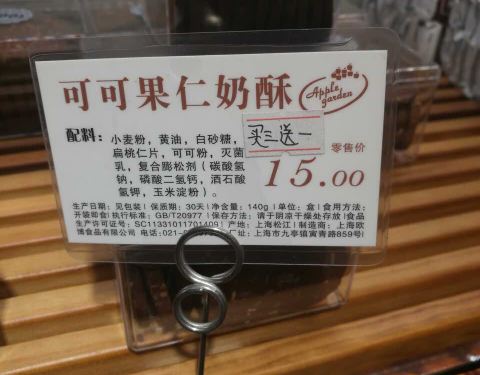 昨天我来买贝贝原味和海苔味的!两个味道都不错,中午去的没有排队,然后支付宝打98折。今天晚上一个人溜达过去买然后看见排队的!海苔味的卖完了,就原味的肉丝贝贝了!我买了15个~不知道什么时候吃腻~但是之前我就一直很喜欢买苹果花园的肉松面包的估计想腻很难