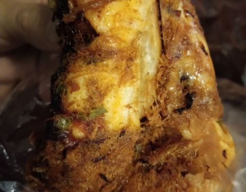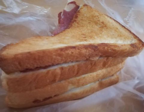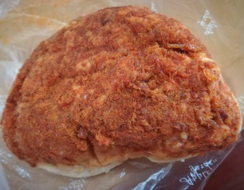 苹果花园的肉松面包一直是我喜欢的,肉松和色拉酱都是非常多的。 缺点就是面包不够松软,不过非常实诚,吃松松辣松这种面包我一顿三只差不多,吃这个一只半已经觉得顿老了,我本来就喜欢吃肉松面包这种,硬吃下那半个,唉呀妈呀好酸爽。
