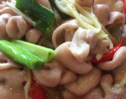 这家#鹅庄#就在七宝附近离家很近的,以经典的台湾美食为主,传统的古早味,据说主厨是道地的台湾人,口碑很不错的,既然是家门口的美食当然偶要来尝尝的咯,何况,鹅也算浑身是宝的滋补之品了。 冻顶茶鹅 是它家的主打菜,看上去粉粉嫩嫩的,很诱惑的吧。。。鹅肉腌制入味,带点烏龍茶香的烟熏味,吃起来鲜嫩甜美。 三杯中卷 三杯鸡是吃过很多了,但三杯中卷么好象就第一次吃了,很有特色的,“三杯”其实是台湾料理的经典,三杯调料配合了里面的九层塔的香气,干锅的中卷吃起来香而韧实。 蚵仔煎 台湾家喻户晓的正宗 #蚵仔煎# 虽然买相一般,但味道却非常的惊艳,不仅里面的蚵仔新鲜多汁,而且其鸡蛋、番薯粉与鲜蚵的比例也调配的恰到好处,香滑可口,才一个转身就被瓜分完了哦。。。 四神汤 其实就是用薏仁、莲子、芡实和茯苓四大补品,加上猪肚、生肠精心熬制的亮汤,好好喝的。 蟹黄海鲜羹 是用它家自制的蟹黄酱配上各式海鲜和嫩豆腐煮成的羹。 姜丝鹅肠 鹅肠脆脆嫩嫩的,配上姜丝,沾点它家秘制的酱料一起吃,不错。 海鲜炒面 是用淡黄色的台湾油面和着海鲜炒的,入口滑爽,很鲜很Q的。