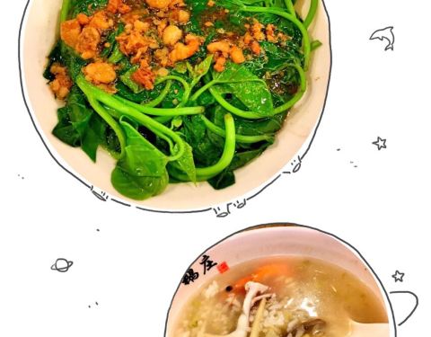 老早前吃过一次,印象不错,某人上次一个人又来过一次也说挺好吃,导致昨天突然很想吃。 五点不到就去店了,还好去得早,菜上得也太慢了吧! #热拌地瓜叶# 最早上的菜,上面有卤肉的,味道不错,一口气全干了! #鹅肉汤米粉# 哎哟就是喜欢吃这种汤汤水水的了!食欲被激起了。 #海鲜泡饭# 味道还可以,就是食材不怎么好,海鲜都没什么肉的。 #台湾香肠# 我是为了吃台湾大蒜才点的香肠!但是香肠略失望…… #冻顶茶鹅# 价格倒是便宜,这次吃没上次感觉好。 买单要我们一上来就买,但是没有单子的,上菜只能靠回忆,这点蛮不爽的。 另外点了饮料,某人觉得#古早味米浆# 太难喝了,直接浪费了。 #台湾手工杏仁茶# 也没多好喝,口感蛮差的,和我在台湾喝的不一样。 吃完晚饭嘴巴巨干!印象差了不少,以后应该不会来了。