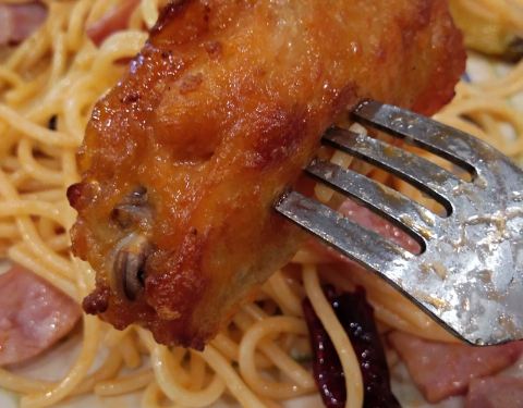 一份意面一份鸡翅一份色拉,凑成我一顿晚饭,就在萨莉亚,另外让服务员拿来番茄酱,拌在面里面吃,一份鸡翅四只,我怎么记得以前是五只的,可能我记错了,如果女儿来还有蜗牛和芝士奶酪意面是必点的,畅饮杯7元一人,这次手上有奶盖,不选择了。