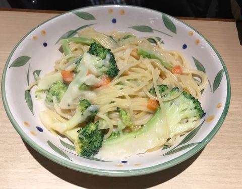 一份意面一份鸡翅一份色拉,凑成我一顿晚饭,就在萨莉亚,另外让服务员拿来番茄酱,拌在面里面吃,一份鸡翅四只,我怎么记得以前是五只的,可能我记错了,如果女儿来还有蜗牛和芝士奶酪意面是必点的,畅饮杯7元一...