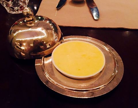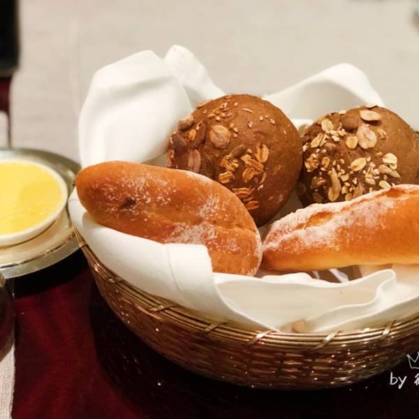 餐前面包 这里是以硬欧包为主,热面包配冷黄油棒棒哒。