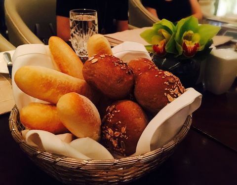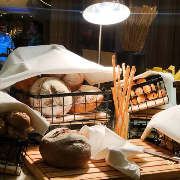 餐前面包 这里是以硬欧包为主,热面...周末要吃个大餐,和回国休假的朋友在外滩玩,顺便吃个晚饭。凭着对华尔道夫的蜜汁好感,最后就决定在这里吃个自助餐。
