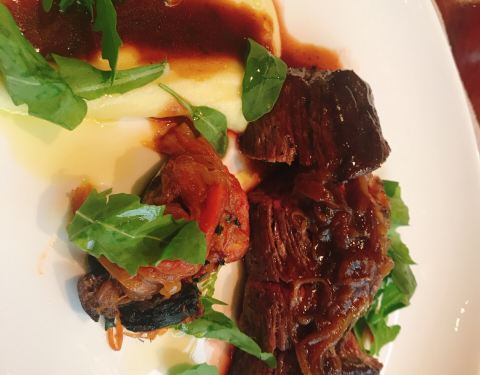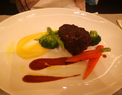 ...选了烟熏金枪鱼色拉,这里的牛颊肉也是好像比较好评的,酱汁的味道都融入肉里面,巧克力甜点也很好吃