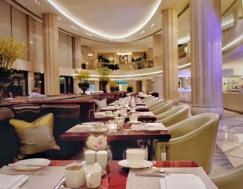 酒店早餐在这里进行,早上六点到十点开放,下楼的时候餐厅人还挺多的,窗景很棒,可惜坐满了人,食物品类以西餐和中餐为主,吃中餐蒸饺的时候吃出了一个坚硬的塑料,幸亏下嘴不狠没有出现可怕后果,不过想想还是...