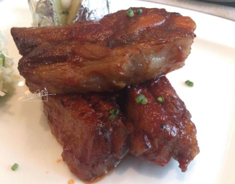 餐前面包 好几个不同的品种 口感也不太一样 他们家的黄油很嗲呢 全部抹面包吃掉啦 橙味三文鱼 所谓的橙味 也许就是旁边的三滴橙汁吧 三文鱼完全没有味道的 被吃惯蘸芥末的朋友疯狂吐槽 烧烤猪肋排 三大根猪肋...