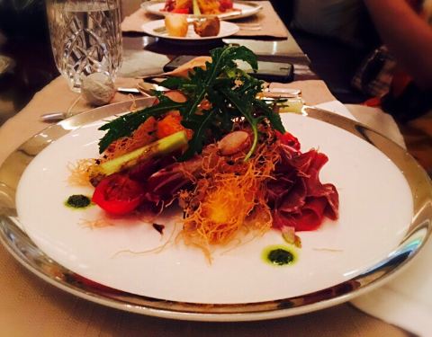 - ...选了烟熏金枪鱼色拉,这里的牛颊肉也是好像比较好评的,酱汁的味道都融入肉里面,巧克力甜点也很好吃