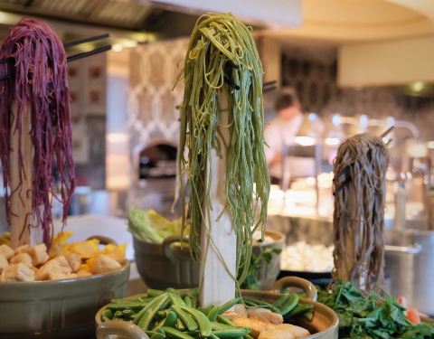 百味园的早餐是欧式半自助风格,食客们可随喜好任意挑选热菜。食客也可从开放式厨房中挑选新鲜面包甜点和冷盘。再搭配鲜榨果汁和精美咖啡和茶品。中饭和晚饭的菜单包含了创新的各国料理,满足不可食客需求。