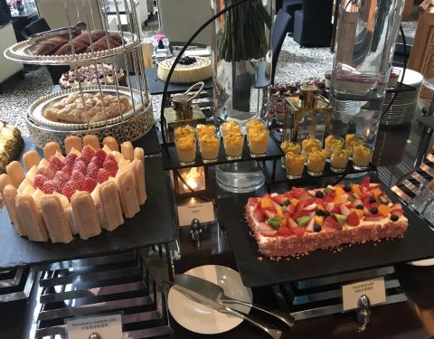 酒店位于新天地,环境优美,自助餐品种好多,三文鱼特别新鲜,甜品有很多种,目不暇接,也非常好吃。大厨服务态度超好,亲自给我介绍菜品。 可以从午餐吃到下午茶,然后扶墙出去。非常适合周末,约朋友、家人一起休闲聚会。下次带爸爸妈妈来吃,太赞了。