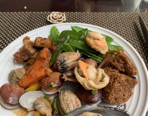 西班牙现切火腿记得吃;海参个大肉厚;比目鱼肥美鲜嫩;烤牛排配一点胡椒汁再入口。中式的水晶肴肉、点心,每种浅尝辄止,不知不觉也吃得很饱。