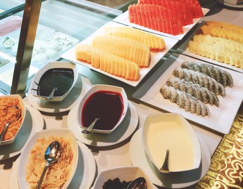 - 酒店位于新天地,环境优美,自助餐品种好多,三文鱼特别新鲜,甜品有很多种,目不暇接,也非常好吃