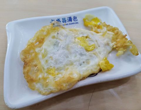 不知为啥,一直很多人排队买包子,排队等到了,才可以进去买单,再出来兑换。油煎荷包蛋和肉圆,打包带走了