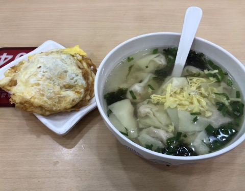 真光路,金汤路。开了很多年的一家餐饮店,吃过汤包和鲜肉月饼。不知为啥,一直很多人排队买包子,排队等到了,才可以进去买单,再出来兑换。 早上过去,吃的鲜肉小馄饨,清汤寡水,很干净的一碗。还可以,无功无过的。油煎荷包蛋和肉圆,打包带走了。