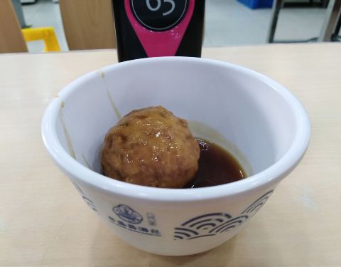 - 不知为啥,一直很多人排队买包子,排队等到了,才可以进去买单,再出来兑换。油煎荷包蛋和肉圆,打包带走了