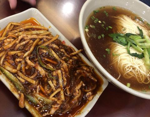 素鸡倒是蛮好吃的,一份两片,只要三块钱。 葱油拌面看上去卖相还不错,味道不够咸,酱油少了那么一点点