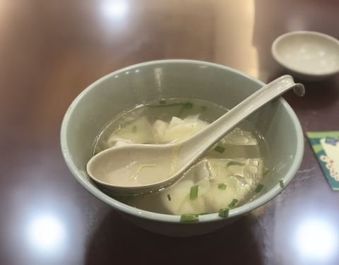 这家老盛兴汤包馆在零陵路上,靠近东安路,肿瘤医院旁边。来往人员较多,所以在下午两三点的时候,店里也是有一半的上座率。 葱油拌面看上去卖相还不错,味道不够咸,酱油少了那么一点点。素鸡倒是蛮好吃的,一份两片,只要三块钱。