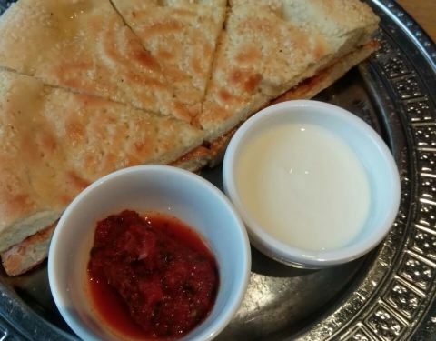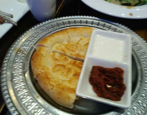 新疆风味的馕不错,蘸着酱料吃,味道很好。 羊排趁热吃,外焦里嫩,味道很好。手抓饭感觉略有点油