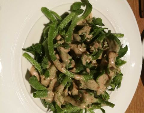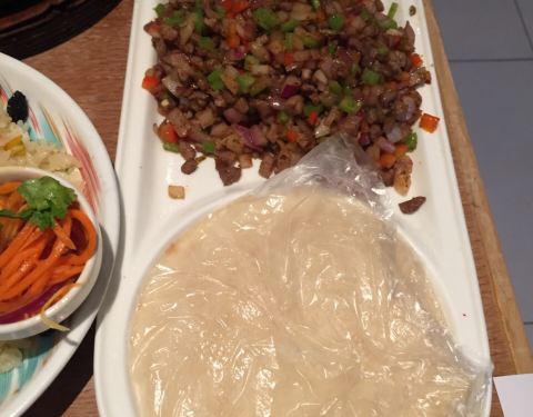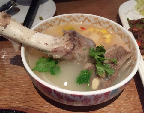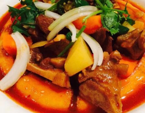 五角场这家属于平时人气蛮旺的店,这次周五时候5点就到了,果然这时候店里还是没有人的,很舒服的坐等。不过大桌都是预约掉的,人多还真得提前。 新疆美食口味还是不错的,这次点单羊肉为主。手抓饭感觉不错,肉不大但是羊油用的好,很香,里面没有红枣,不晓得是不是改良过了。羊肉薄饼虽然肉不多,但是个人觉得挺喜欢的。饼还少了一些,最后是直接吃的。羊骨汤虽然清淡,但是喝起来口感很赞。另外羊肉串是店里绝对的招牌,肉多价格好,多吃几串也是值得的。纳帕里勇就不说了,没人觉得不好的吧,和其他家比糖少了一些。 除了这些,还有一个土豆片超级好吃。总得来说这家店还是非常值得一吃的,要不是因为吃不下,那个超大盘的大盘鸡绝对像尝试一下的。
