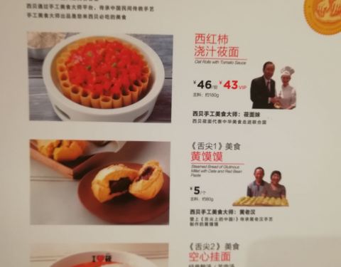 很喜欢吃肉,喜欢吃羊肉,喜欢吃西贝的羊背,羊背的皮沾酱吃真的是很嗲, 很香很脆的, 下面还有点油, 太喜欢了, 每次都会吃好多, 每次都忘记会胖的了... 拨丝奶皮28元 偶喜欢吃的, 不太甜的, 吃了之后发现刚刚好...很喜欢吃肉,喜欢吃羊肉,喜欢吃西贝的羊背,羊背的皮沾酱吃真的是很嗲, 很香很脆的, 下面还有点油, 太喜欢了, 每次都会吃好多, 每次都忘记会胖的了... 拨丝奶皮28元 偶喜欢吃的, 不太甜的, 吃了之后发现刚刚好, 拨的出丝就可以了呀... 辣炒小黄牛 小黄牛倒是很嫩的, 味道也可以, 只是有点小辣。 石磨豆腐 么啥特色, 就是农家的土豆腐蒸一蒸, 沾点调料吃。 弯刀牛肉 好象就是牛肉. 牛筋干切片, 切得很薄的一片片。 苁蓉烧牛尾 这个菜很好吃的, 炖得烂烂的, 又很入味, 偶很喜欢, 可是只有7块哦。 莜面窝窝 这个也叫窝窝哦, 呵呵, 俺第一次知道, 就是一张张面皮, 蒸的还有点糊呢。 羊肉热汤和菌菇汤 这是配莜面窝窝吃的, 不过是要另外再花钱一碗一碗买的,汤里的料也不是很多, 味道也没有莜面鱼鱼配的羊肉汤好喝。