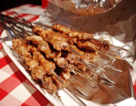 点了黄米凉糕,羊肉串,凉拌面筋,烤鱼,三种蘑菇,每样都好吃~目前还没有踩过雷
