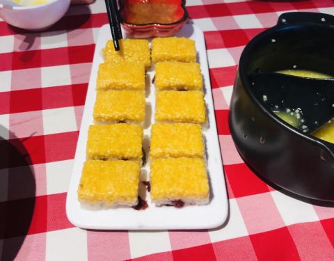 - 点了黄米凉糕,羊肉串,凉拌面筋,烤鱼,三种蘑菇,每样都好吃~目前还没有踩过雷