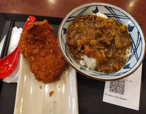 这家有喜欢的日式咖喱饭,咖喱饭里搭配了土豆,胡萝卜,肥牛,味道挺不错的,是咖喱的微辣,酱汁很下饭的。再搭配块热乎的猪排,一份午餐就够了。