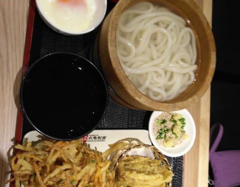 位置不能说是非常好找,服务很不错,快速,乌冬味道就真的不对我口味,寡淡,天妇罗很大份,开始觉得35是有点贵的,不过看见这个分量就没话说了,晚饭也拿出来吃了,鸡块不错的!在日月光美食广场这一片。工作日...
