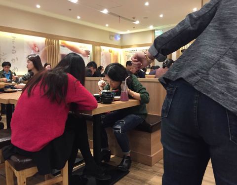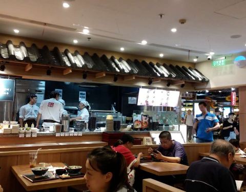 在日本吃过这家店,当时记得生意超级好,也是在一个车站里吃的。店家是自助点餐,在日本还有点习惯,在这里倒反而有些不习惯了,店内没有什么服务员,自己拿了盘子一路拿菜。不过,这家店的卫生有些不到位,地板上是客人掉落的纸巾,桌子上很多餐具来不及收走,貌似只有里面的一个大爷会抽空收拾,人手估计也不够,但是这个真的影响到了客人的用餐体验。另外,头顶上的空调怎么声音这么大?我老感觉头顶有个 洗衣机在洗衣服。。。。饭的口味我还是蛮喜欢的。