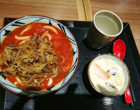 晚上在黄浦日月光逛到b1层的丸龟制面,想起有一张团购券,进去问一下,虽然临近打烊,但是服务员还是很热情招待。 番茄牛肉乌冬面酸酸甜甜的,面放得时间长了,有点糊,牛肉补偿式给了许多。蒸蛋同样的问题,冷了,有腥味,而且保鲜膜掉进碗里。