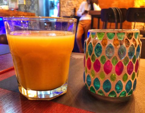 土耳其印度餐厅 这块区域更像是新的酒吧场所 菜单有中英文对照 店铺外围设了露台座 餐厅的桌上摆放着烛台 想必晚上颇有氛围 多为外籍人士 来就餐的也是 「橙汁」某牌的橙汁 非鲜榨 「咖喱鸡配洋葱番茄汁」小...
