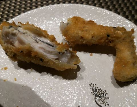 - 最让我惊讶的是,这家米奇里推介的日式餐厅里面,居然还有炸牛蛙这道菜,牛蛙本身就是很嫩,炸过后更好吃了