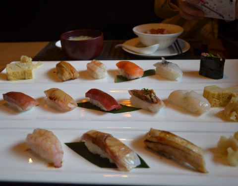在上海也能吃到正宗的筑地市场,感觉是很满足,不过钱包君就不开森了,开在长乐路上,环境和服务都是没得说的优雅,寿司一个个玲珑剔透,食材很新鲜,不像自助餐那么量多,每一品都很精致,和在日本的感觉差不多...