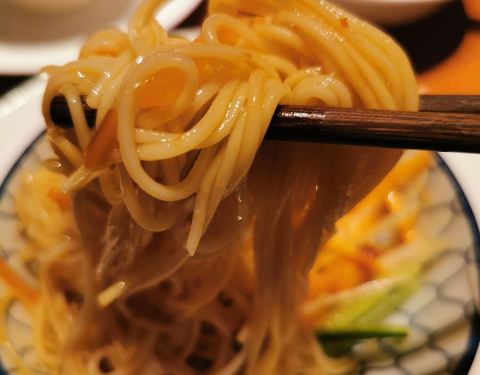 和父母在这家吃饭,父母一直很喜欢这个品牌,不仅好吃,还很健康~ [环境]临时决定来这家吃饭,所以没有预定到包房,大堂环境也很不错,各种布置都很雅致~ 而且晚餐时间还有琵琶表演,意境和餐厅的整体环境特别搭~ [服务]工作人员服务很到位,有些菜品需要分食,工作人员都是耐心服务,而且注重细节,点赞~ |温泉蛋色拉^温泉蛋流黄伴着蔬菜色拉,干湿相宜,很好吃~ |什锦拌面^可以根据自己的口味需求要求工作人员制作拌面,还挺贴心的~