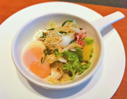 膳道—“春有百花秋有月,夏有凉风冬有雪,若无闲事挂心头,便是人生好时节” 一走进去就有种文人墨客的感觉,静静的坐下,听一曲古筝,品一杯他家的老白茶,心静下来后,开启美食之旅 温泉蛋拌时蔬 黄橙橙的蛋液...