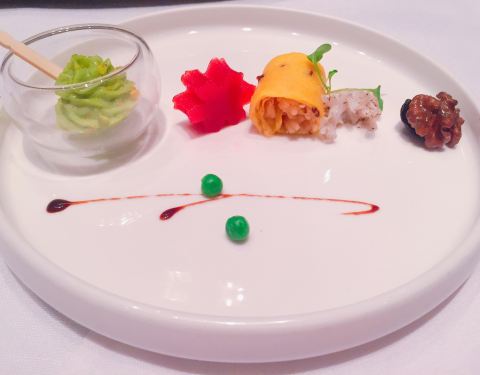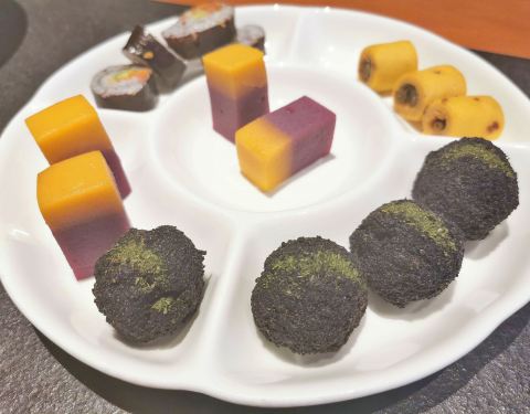 - 前菜品种丰富,而且各个颜值创意满分哦,牛油果外面包裹上黑炭粉,不输给很多米其林餐厅出品哦