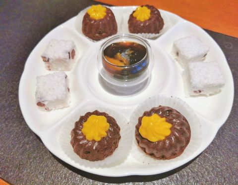 膳道姐妹店,一素素斋,自助料理同样精致美味哦 性价比超高的素食自助,喜欢吃素的朋友绝对不能错过哦!不过只有午市,有点遗憾了。 前菜品种丰富,而且各个颜值创意满分哦,牛油果外面包裹上黑炭粉,不输给很多米其林餐厅出品哦。 更有樱桃装的山药泥,创意满满拉 春季最当季的丝瓜配上虫草花和木耳,看似家常,但却十分美味呢 蒸档里面也是品种繁多,当然一定要留点肚子给他家的点心呢,手工江南小点,无论是美味的玫瑰绿豆糕,还是鲜美的葫芦饼无一不是品味之选哦 一素料理,膳食之道!