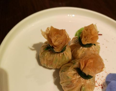 慕名而来,其实离家很近,但周围修路确实不愿往里面走。整个国盛都很萧条,大概只有这家膳道还开着。一家人出来改善生活,所以没有约宴席,大堂吃吃。 整体口味非常不错,特别是素食,口味清淡而丰富。最差劲的是干煎藕盒,太油腻,不好,芥末虾也有点腻,吃一个正好。同时点了两个油煎的菜品,是我的失误。 酸汤鱼滑,菩提素袋,海带胡瓜非常赞。青柠海蜇头,柠香不足,有点欠缺。 汤品本来点的鸽蛋汤,结果没了,换了功夫汤,失误了,不好喝。妈妈点的菌菇汤倒是很不错,菌菇的鲜味吊的绵远流长。 整体不错,下次试试宴席。