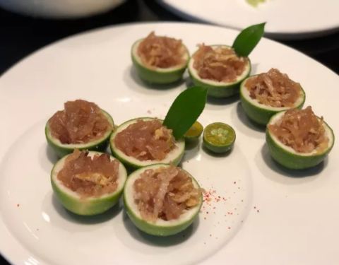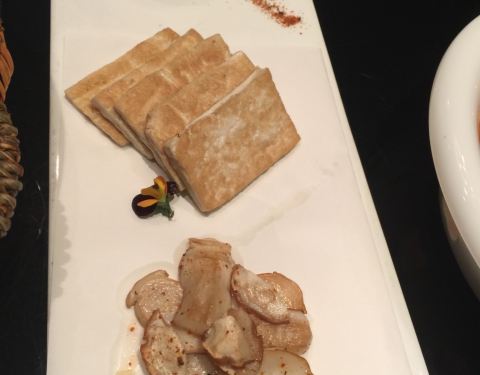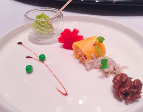 不会错的选择,环境好服务好,菜品美貌又好吃。上菜之前先上了南瓜籽和小点心,不是很甜,但好吃的。青柠蛰头,非常清爽开胃,缺点是柠檬味弱了一些。