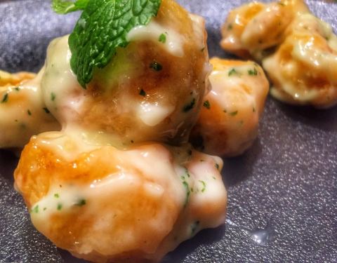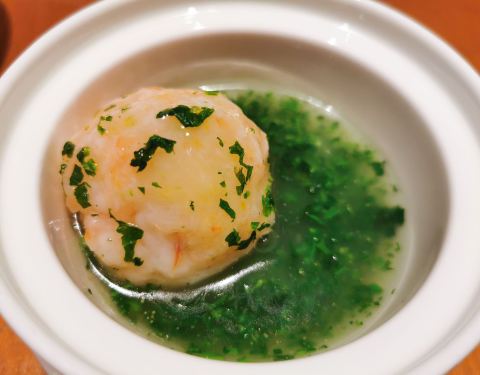 膳道—“春有百花秋有月,夏有凉风冬有雪,若无闲事挂心头,便是人生好时节” 一走进去就有种文人墨客的感觉,静静的坐下,听一曲古筝,品一杯他家的老白茶,心静下来后,开启美食之旅 温泉蛋拌时蔬 黄橙橙的蛋液自然流心,拌着各色蔬菜,一下子就是春天的既视感哦 家烧白鮰鱼 家烧的做法虽然摒弃了本帮的浓油赤酱,但同样的入味鲜美。鲜嫩的鱼肉配上当季的茭白,怎么一个美味了得 翡翠煨清迈河虾球 只能说大概清迈的河虾特别大吧,感觉都是明虾肉了呢 橄榄油淋有机时蔬,只能说吃完这道菜,什么白灼系列都太LOW了