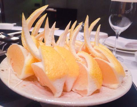 这家位于普陀区的膳道是新开的,一改往日风格,做的养生创意菜很不错,柑橘是老板自己的果园中的,这家店的装修比较豪气,前菜就色味俱佳,让人很是期待