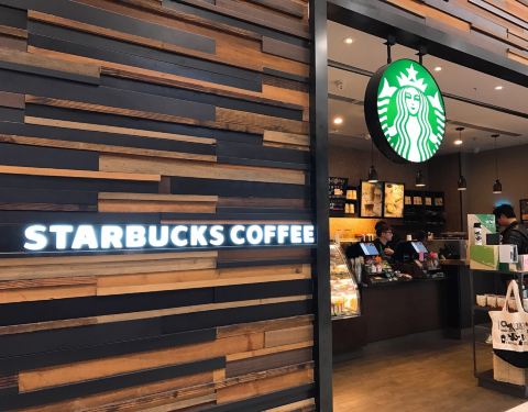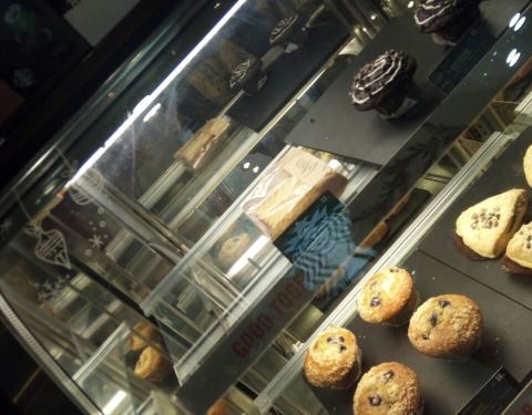 - ...的星巴克,很隐蔽,外面看不见,也是问了工作人员才知道的,买了摩卡和桃桃绿茶,最新的,味道还不错