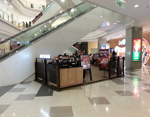在龙之梦一楼,靠近电梯的地方,座位的地方一直有不是消费者的,所以一般没有座位,只好打包带走,信用卡积分什么的都可以用,服务也还可以。