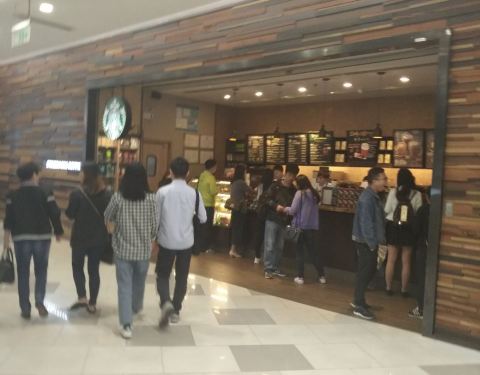 星巴克虹口龙之梦店其实是在凯德龙之梦商场的一楼 因为没地方 星巴克把门口商场的位置划为了自己的休息区 又因为人太多 感觉很拥挤 所以给了4个星 但是在这里坐了一下午 都没有事 而且时不时还有给免费的甜品品尝...星巴克虹口龙之梦店其实是在凯德龙之梦商场的一楼 因为没地方 星巴克把门口商场的位置划为了自己的休息区 又因为人太多 感觉很拥挤 所以给了4个星 但是在这里坐了一下午 都没有事 而且时不时还有给免费的甜品品尝 值得称赞