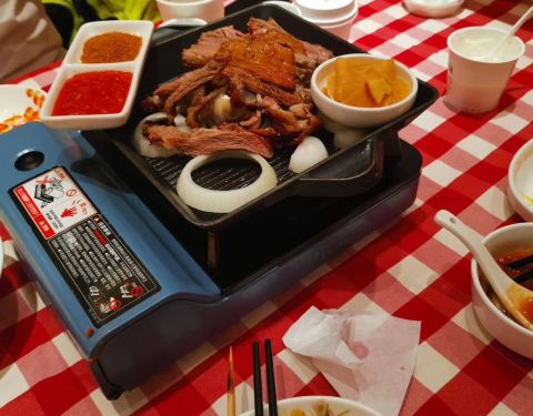 北方菜式的大型连锁店,不要要求海鲜,牛羊肉是强项,环境不错,现在流行用沙漏计时看出菜速度,回到食品,牛脖骨没有什么脂肪,用燉的嫩,鸡丝筱面麻辣口味,凉面,这种天气开胃,羊腰烤的不错,不焦,没有什么骚味,也可能是孜然粉的效果,羊肉串个人嫌太小,在新疆内蒙的烤羊肉都很有份量,油脂浓郁,只是不健康,沙剌汁口感太甜。店里服务不错但是细节差的离谱,问服务员有没有停车券,说去负一楼拿,原来要先入会员才有,服务人员说的很清楚没有店内消费就免费停车,餐厅给的信息是错的。太扯了
