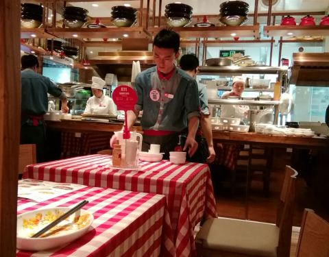 - 上菜速度还算快但口味挺不错,厨房流程还都是玻璃窗透明可见,但敞开式的也会让顾客觉得油烟味比较重
