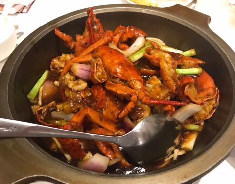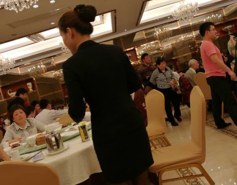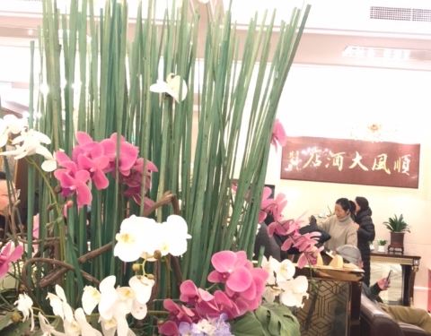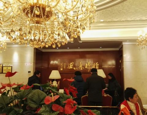 - 六点钟到达饭店,大堂已坐满,好多人等位。顺风大酒店一直很热卖,想订个位子要提前一周