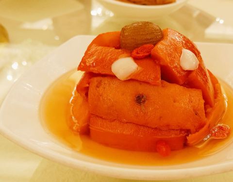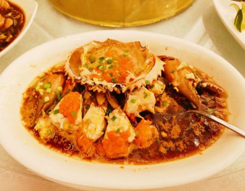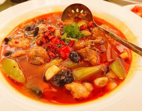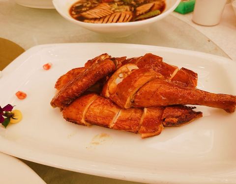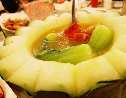 [环境]小年夜的聚餐又开始啦,今年包房没预订到,只能坐大厅里了。大厅里放了很多大圆桌,都是提前吃年夜饭的老食客们,顺风生意就是这么好。 [服务]人一到齐大堂经理就叫服务生帮我们上菜,冷盘没上齐就上火焖...[环境]小年夜的聚餐又开始啦,今年包房没预订到,只能坐大厅里了。大厅里放了很多大圆桌,都是提前吃年夜饭的老食客们,顺风生意就是这么好。 [服务]人一到齐大堂经理就叫服务生帮我们上菜,冷盘没上齐就上火焖鲥鱼了,而西瓜汁还没上呢。速度好快,没办法看一个个菜从后厨端出铺满了整个台面我们吃的速度也只能加快啦。 在提速下,一桌满满当当的菜慢慢逐个消灭,送菜员要收一个空盆才能放下一个新菜,我们尽量配合啦。看看左右陆续到来的食客,很多都是举筷等菜上,有菜总比没菜吃好很多。而服务生也忙到飞起,应接不暇,我们要换的口汤碗也是服务生特意从厨房间刚洗后拿来,人多事多,能做到如此实属不易。 |五香素鸡^不要看这个看似普通的家常菜,要烧的颜色正常入味还不老,还是需要点水平的。 |马兰头香干卷^卷起来不会洒落,又有马兰头的清香,很爽口的前菜。 |蜂蜜老南瓜^这个南瓜品种好,又甜又糯,我们连糖水也喝光了。 |XO酱拌黄瓜苗^一直很喜欢这道菜。 |顺风海鲜冬瓜盅^很气派的一个海鲜盅,用整个冬瓜做成的盛器,外皮雕刻花纹和文字,里面放海鲜羹,好看又好吃的菜式。 |蜀香牛蛙走地鸡^这个第一次吃,牛蛙和走地鸡又鲜又嫩,蛮灵的。 |川味牛肉^看似火辣辣的红油铺满牛肉,其实能够承受,现在怎么口味越来越重了。 今年年夜饭配的套餐大多数是我们平时一直吃的,哥哥又添换了几个菜,总体菜式还是保质保量的,几个平时不吃的菜偶尔吃觉得有亮点。 席间大家举杯,愿身体健康,欢欢喜喜开启一年好光景。